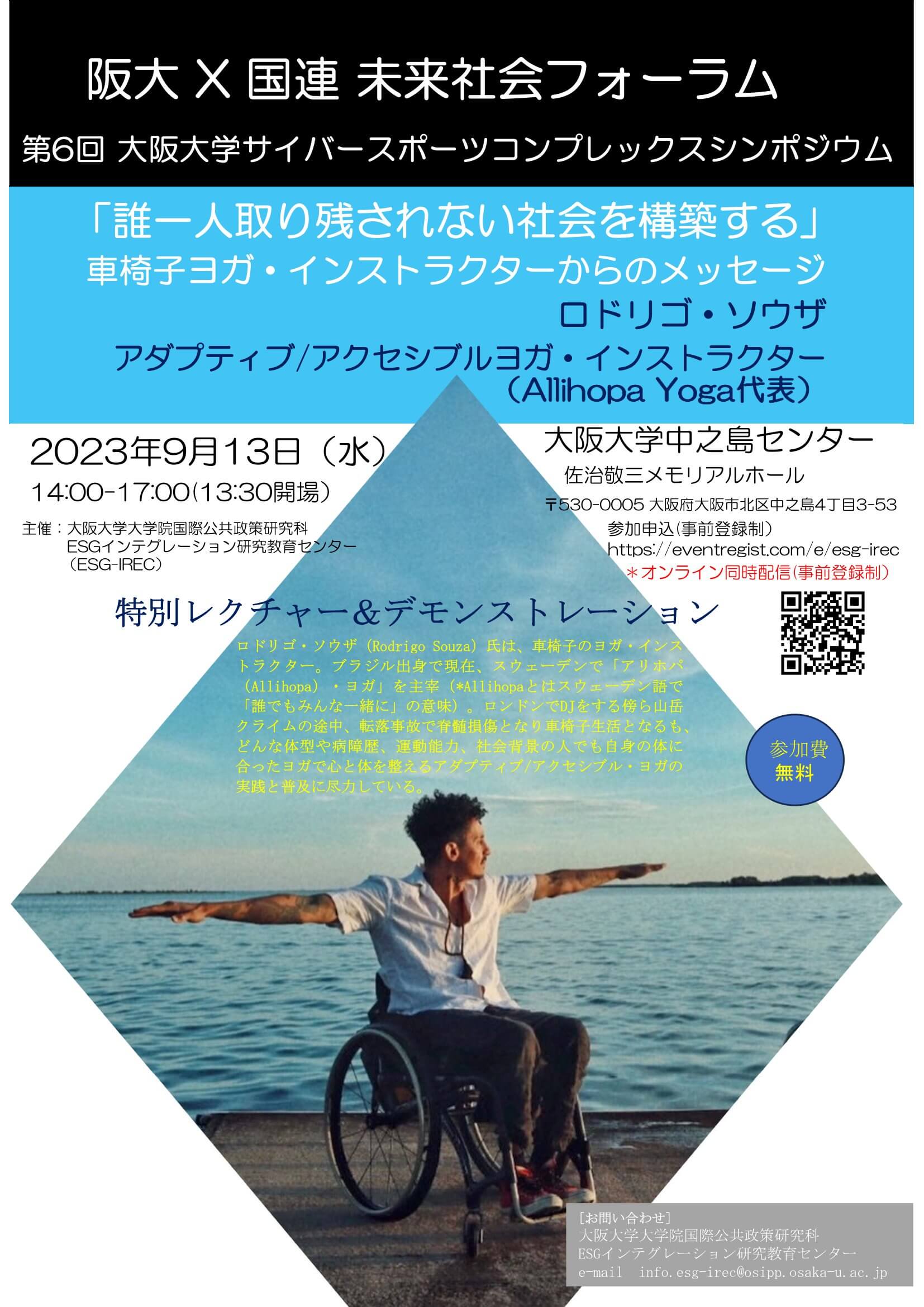 そこで、 来たる2023年9月13日には、 山岳転落事故で車椅子生活になりながらもヨガインストラクターとして自立し、アダプティブ/アクセシブル・ヨガ指導者として世界でご活躍のロドリゴ・ソウザ氏をお招きし、「障がいがあってもヨガも呼吸法も実践できる、そして、インストラクターとして他者の力にもなれる」という力強いメッセージが込められた特別レクチャーを開催します。また、実際に車椅子インストラクターの導きによって一緒に心と体に響き渡るヨガを体験した後、私たちが産官学民で連携し、いかなる意識変革や行動変容につなげていくか、ラウンドテーブル・ディスカションを行います。