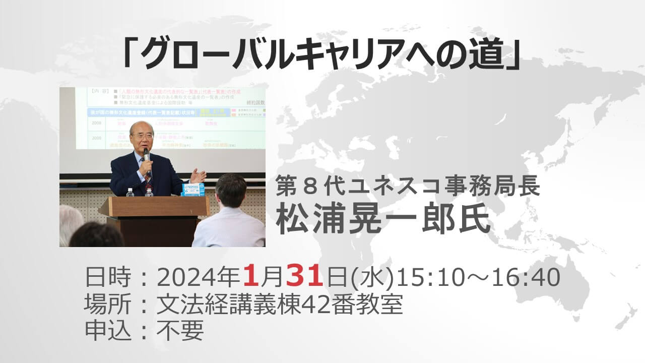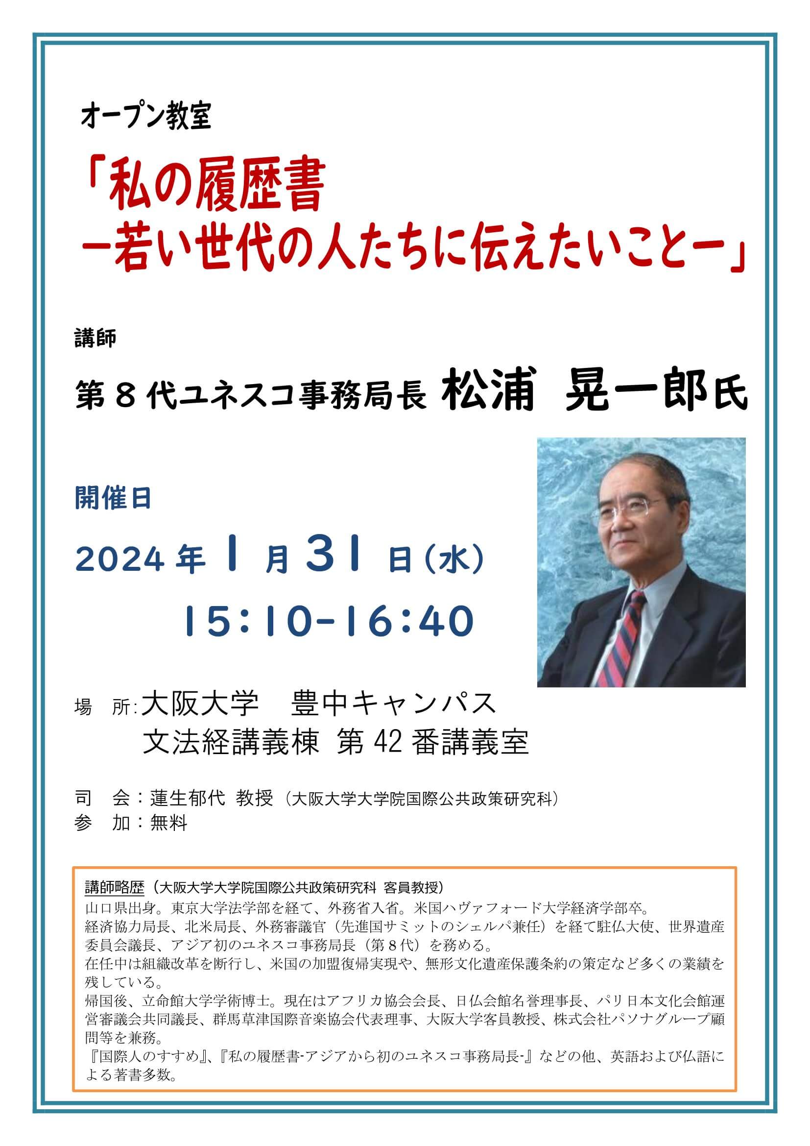 オープン教室「私の履歴書-若い世代の人たちに伝えたいことー」第8代ユネスコ事務局長 松浦晃一郎氏