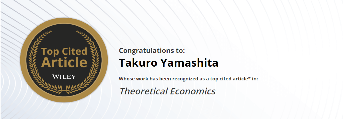 Theoretical Economicsは経済理論の分野において最も重要とされる学術雑誌のひとつであり、そこに掲載されることはその論文が非常に重要な研究業績であることを示しています。